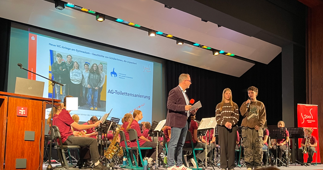 Ehrenamtspreis Bildung der Sparkasse Rhein-Maas für unsere AG Toilettensanierung