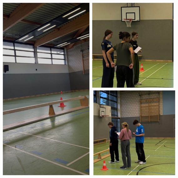 Gemeinsam bauten wir zunächst einen Parcours auf und gingen diesen anschließend zusammen zur Probe durch. Danach teilten wir uns selbstständig in Gruppen ein und erhielten Beobachtungsbögen, mit denen wir jeweils vier Kinder begleiteten und bewerteten. Dabei beobachteten wir nicht nur die Durchführung der einzelnen motorischen Aufgaben, sondern achteten auch auf das Verhalten der Kinder sowie auf mögliche Schwierigkeiten bei bestimmten Bewegungen.